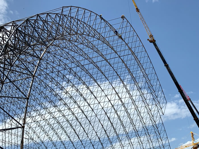 (2)网架加工前应对现场尺寸进行复测,确认无误后方可进行加工、安装;网架制作、运输、安装应遵守《空间网格结构技术规程》JGJ7-2010、《钢网架沅江螺栓球节点》JG/T 10-2009、《钢网架沅江螺栓球节点用高强度螺栓》 GB/T 16939-2016、《沅江钢结构沅江工程沅江施工规范》 GB50755-2012、《沅江钢结构沅江工程施工质量验收标准》 GB50205-2020。