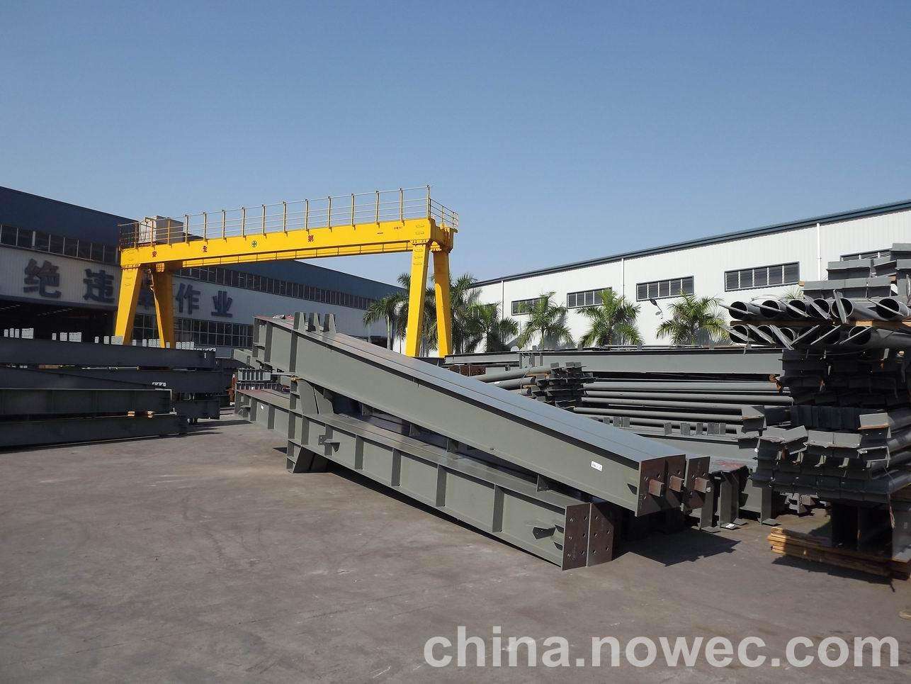 条状单元一般沿长跨方向分割,其宽度约为1~3个网格,其长度为l2或l2/2(l2为短跨跨距)。块状单元一般沿沅江网架平面纵横向分割成矩形或正方形单元。每个单元的重量以现有起重机能胜任为准。条(块)与条(块)之间可以直接拼装,也可空一网格在高空拼装。由于条(块)状单元是在地面拼装,因而高空作业量较高空散装法大为减少,拼装支架也减少很多,又能充分利用现有起重设备,故较经济。这种安装方法适用于分割后网架的钢度和受力状况改变较小的各类中小型网架,如两向正交正放四角锥、正放抽空四角锥等网架。